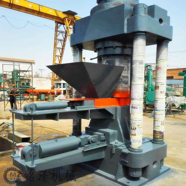 鋁屑液壓壓塊機(jī)的進(jìn)料口,布料油缸前行推動推拉塊,將原材料輸送到模具內(nèi),布料缸返回到初始位置;主油缸下行,將原材料擠壓成高密度餅塊,主油缸微上行;模具下方的推塊缸后行,為脫模提供空間;主油缸繼續(xù)下行,將餅塊從模具定出;推塊缸前行,將餅塊推出到出塊輸送機(jī),整個(gè)過程就完成了,以此循環(huán),實(shí)現(xiàn)自動化生產(chǎn)。